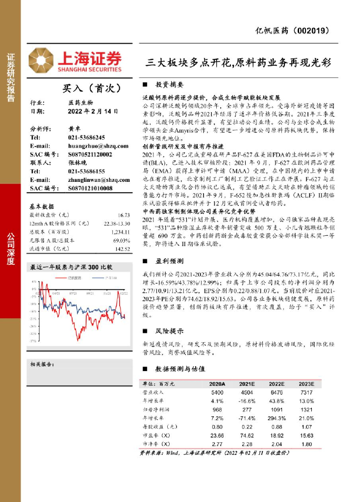 上海证券:亿帆医药——三大板块多点开花,原料药业务再现光彩.pdf