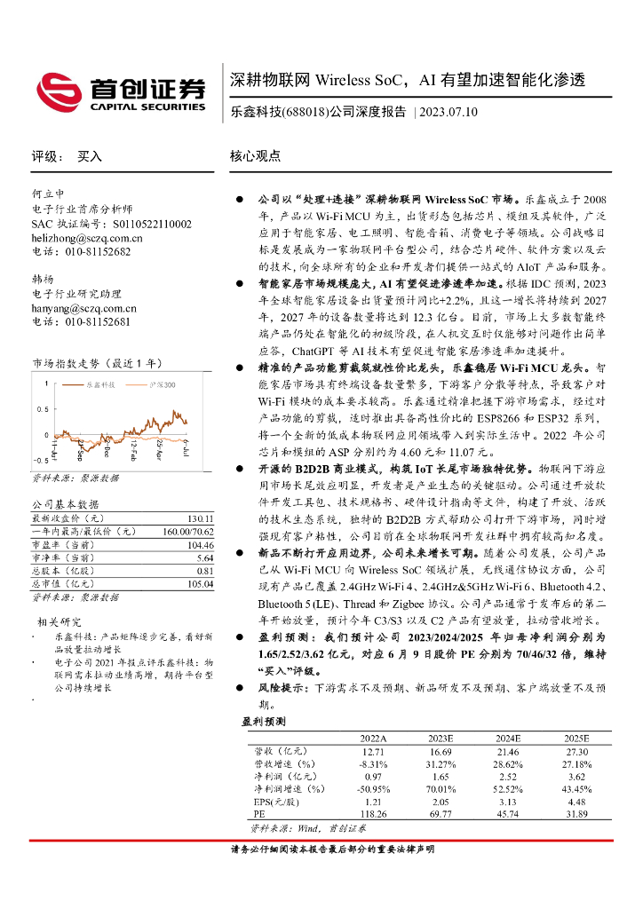 首创证券:乐鑫科技(688018)-公司深度报告深耕物联网Wireless SoC,AI有望加速智能化渗透.pdf
