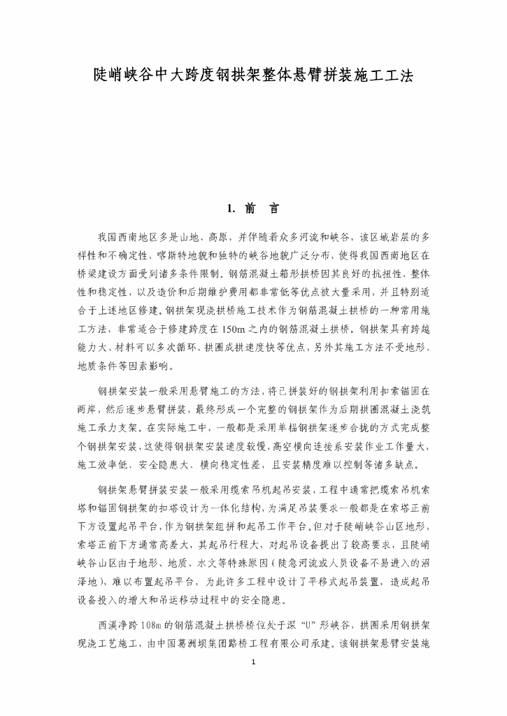 桥梁大跨度钢拱架整体悬臂拼装施工工法.pdf