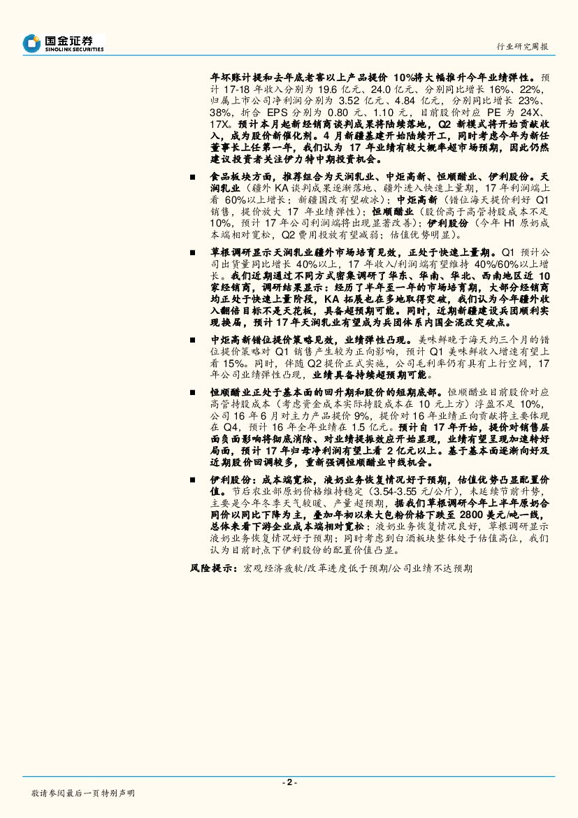 国金证券:食品饮料行业研究周报:茅台稳定批价举措见效, 新疆建设兵团换届+基建开工重新关注新疆板块.pdf