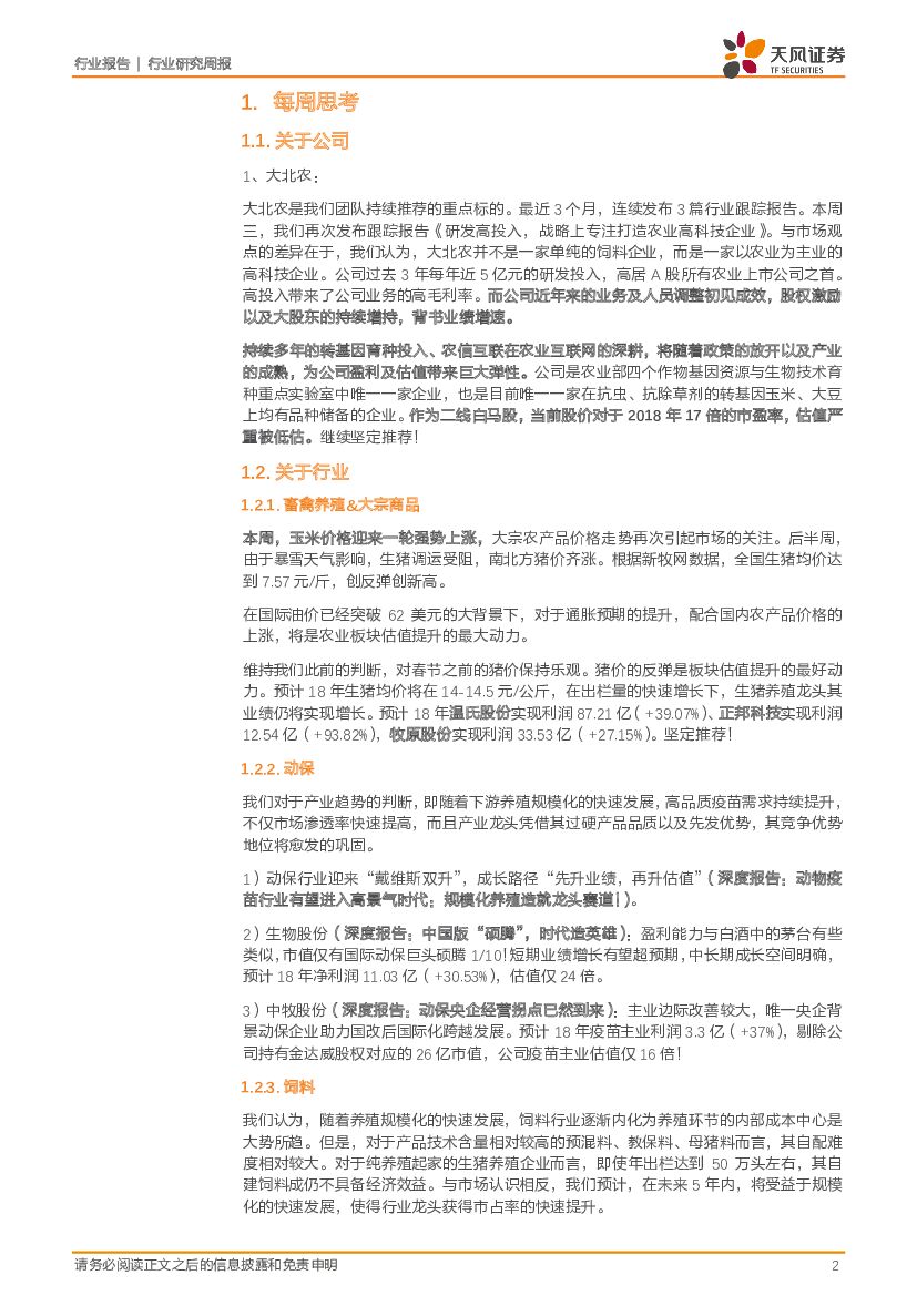 天风证券:农林牧渔2018年第1周周报:本周重点推荐大北农:二线蓝筹,稳增长低估值!.pdf