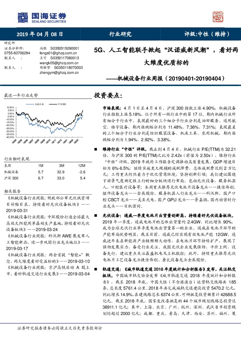 国海证券:机械设备行业周报:5G、人工智能联手掀起“汉诺威新风潮”,看好两大维度优质标的.pdf