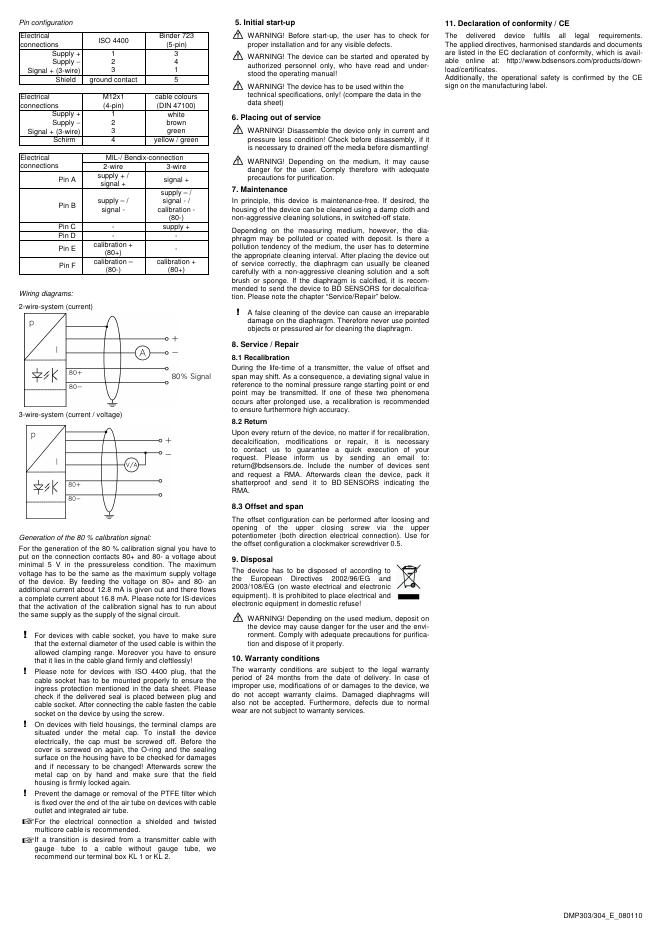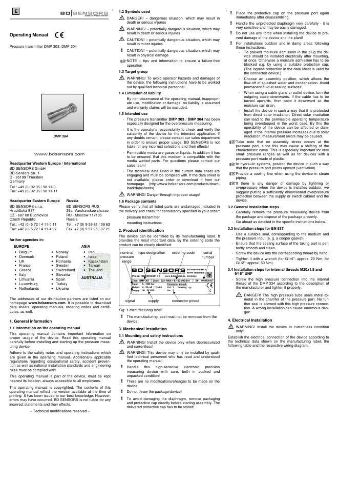 BD SENSORS DMP 303, DMP 304 Pressure transmitter 操作手册.pdf