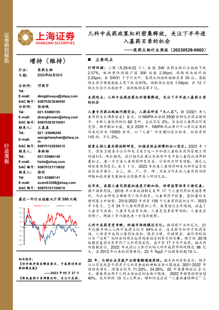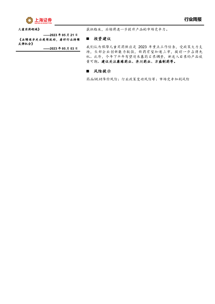 上海证券:医药生物行业周报:儿科中成药政策红利密集释放,关注下半年进入基药目录的机会.pdf