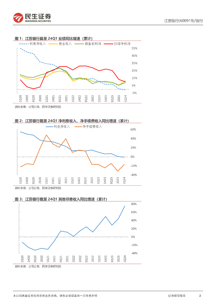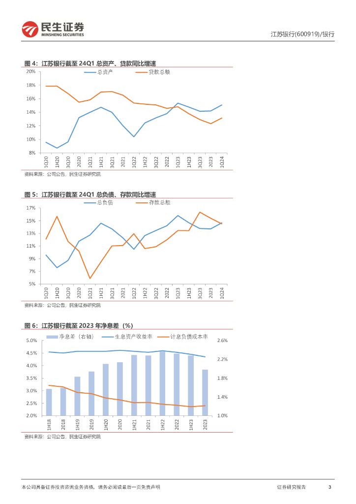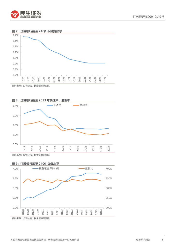 民生证券:江苏银行(600919)-2023年年报&2024年一季报点评:营收增速回升,资产质量稳定.pdf
