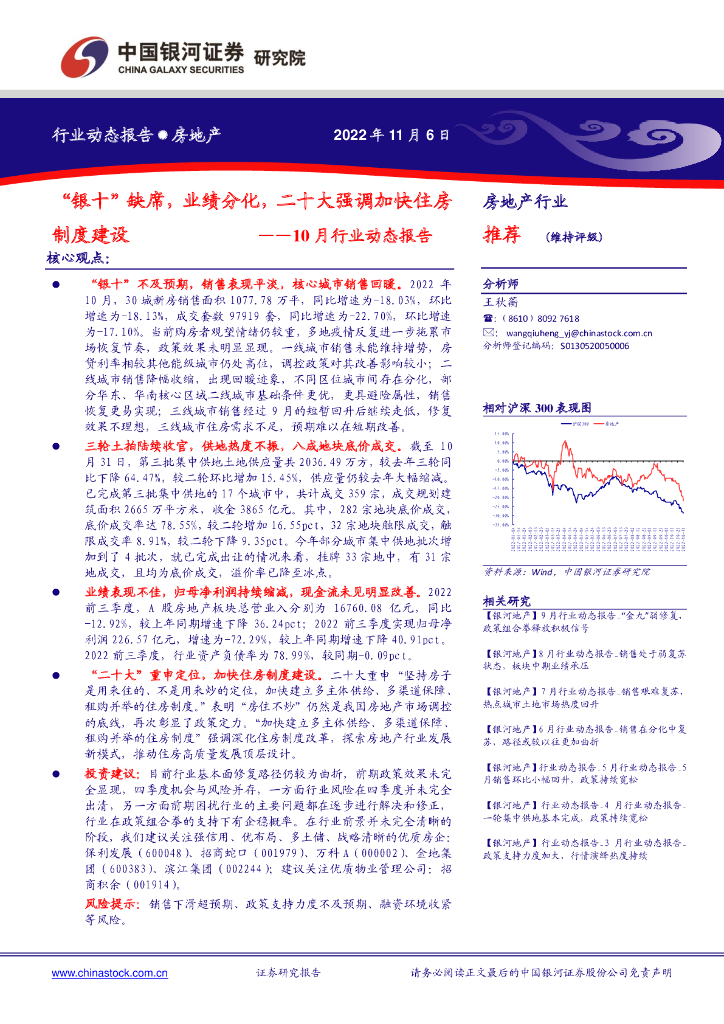 中国银河:房地产行业10月行业动态报告:“银十”缺席,业绩分化,二十大强调加快住房.pdf