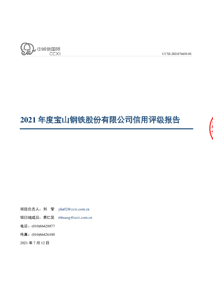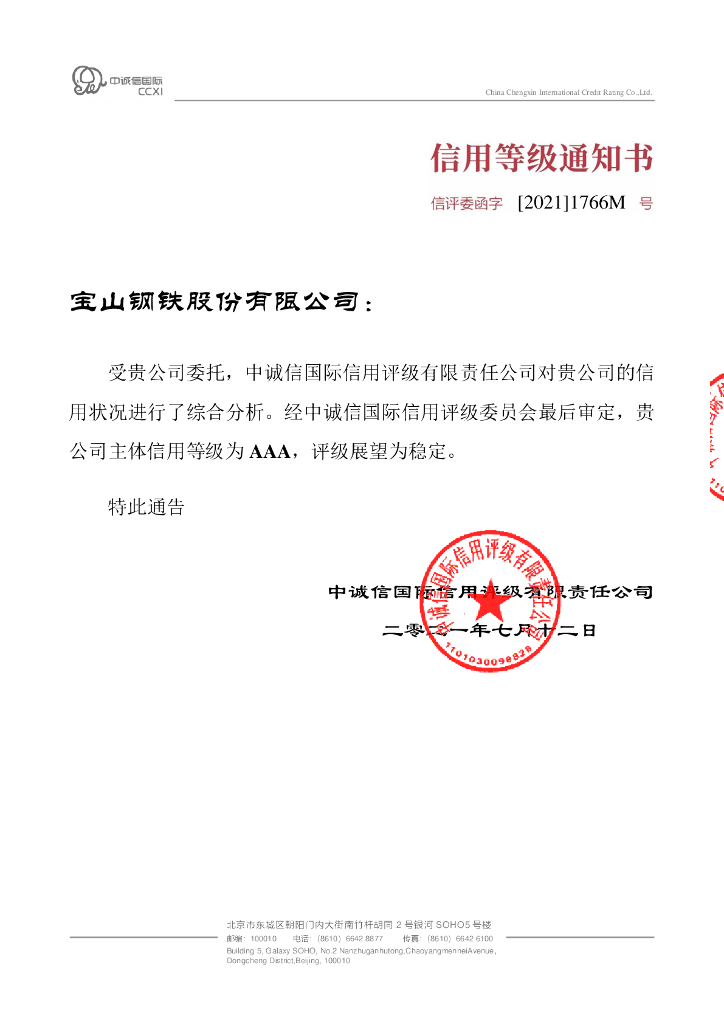 中诚信:宝山钢铁股份有限公司信用评级报告及跟踪评级安排.pdf