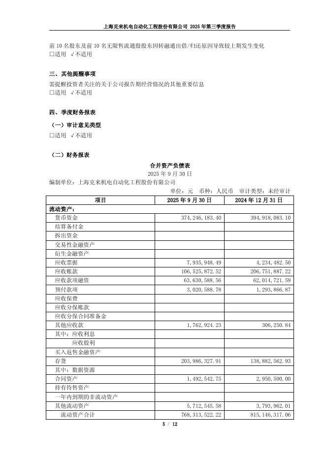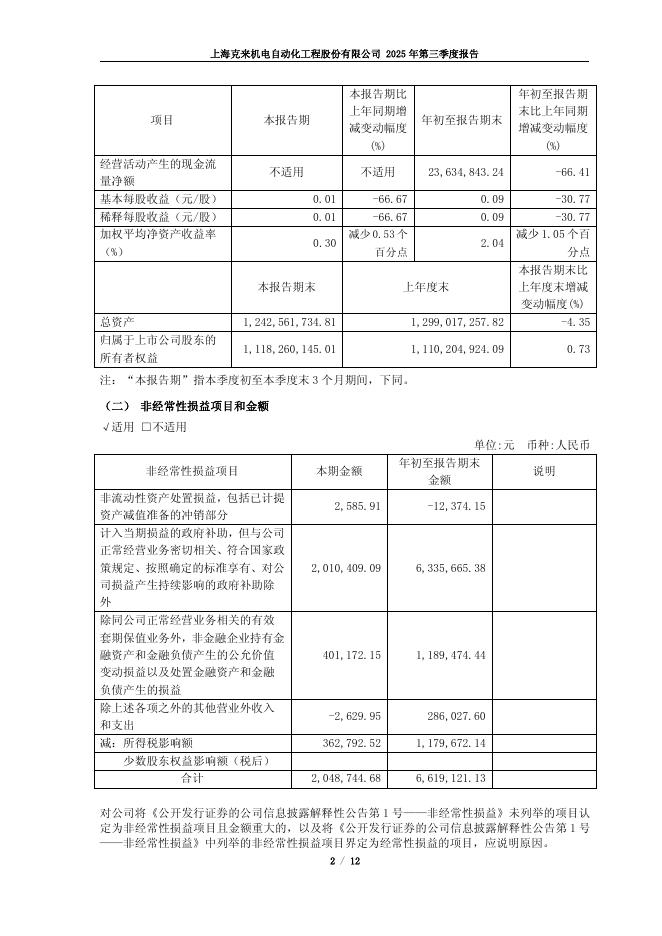 603960-克来机电:克来机电2025年第三季度报告.pdf