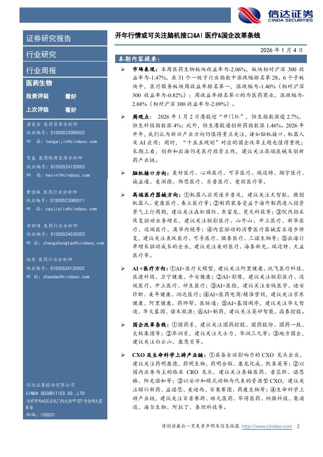 信达证券:医药生物行业周报:开年行情或可关注脑机接口&AI医疗&国企改革条线.pdf