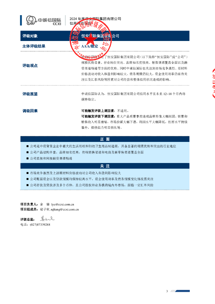中诚信:恒安国际集团有限公司2024年度信用评级报告.pdf
