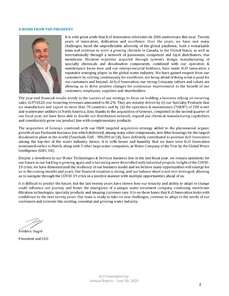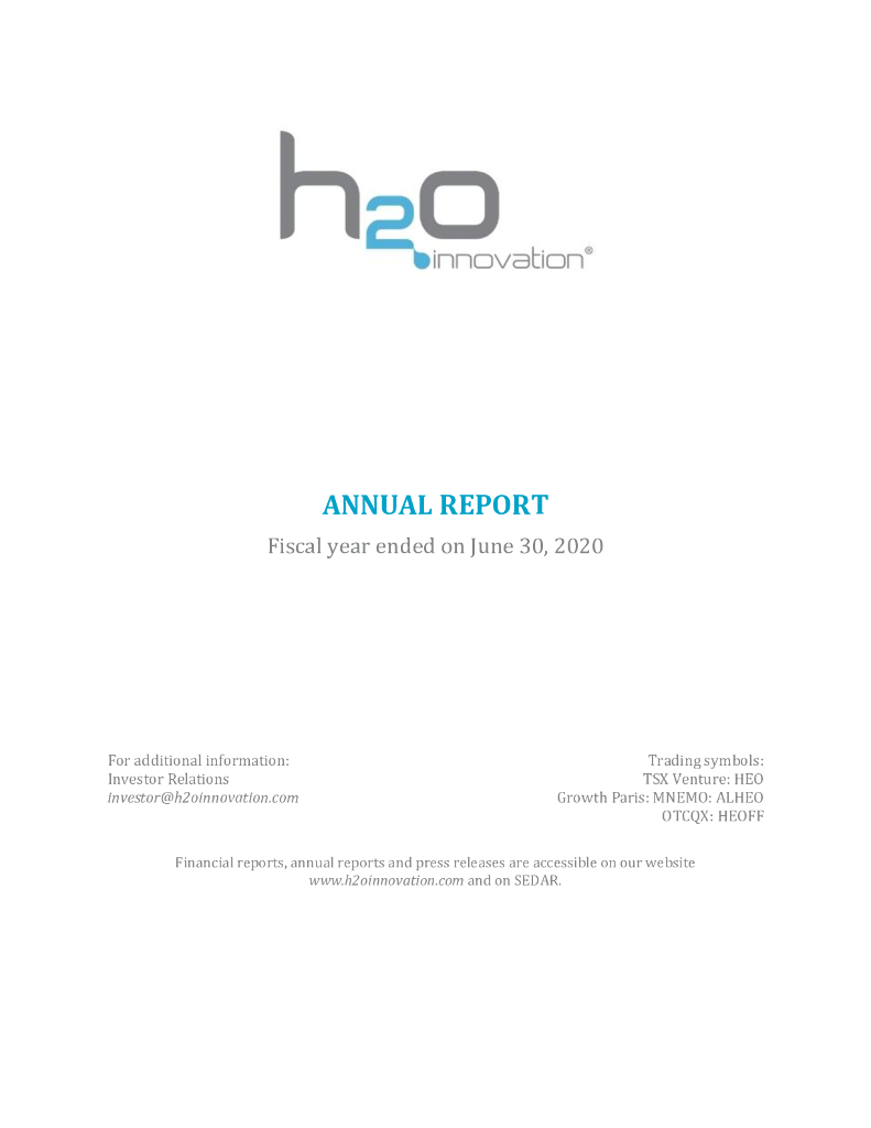 H2O Innovation Inc. 2020财年年度报告(英文版).pdf