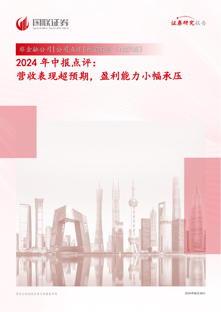 国联证券:新宝股份(002705)-2024年中报点评:营收表现超预期,盈利能力小幅承压.pdf
