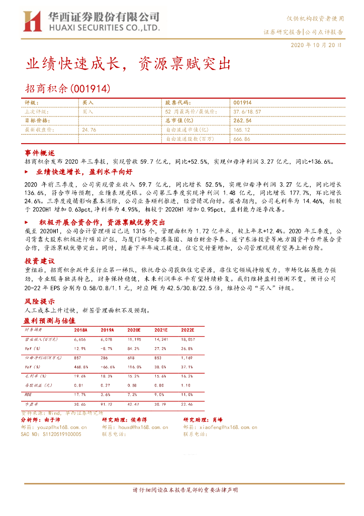 华西证券:招商积余(001914)-业绩快速成长,资源禀赋突出.pdf