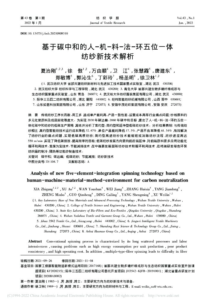 武汉纺织大学:基于碳中和的人-机-料-法-环五位一体纺纱新技术解析.pdf