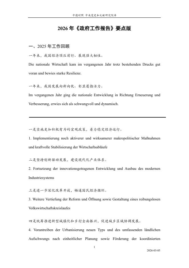 中央党史和文献研究院:2026年《政府工作报告》要点版(中德对照).pdf