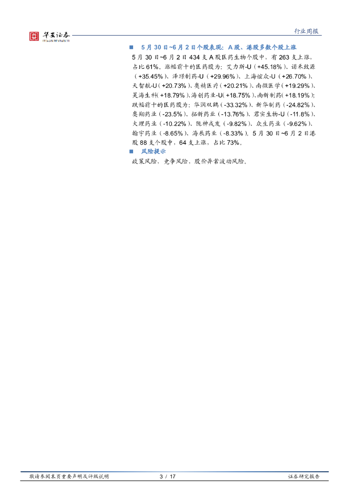 华安证券:医药生物行业周报:科创行情引发医药专精特新关注度提高,选股着眼未来重成长.pdf