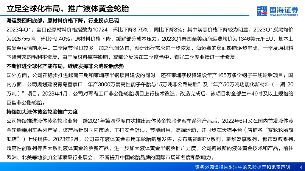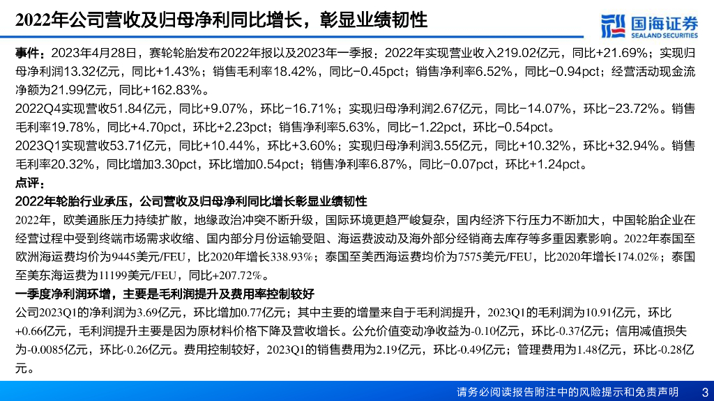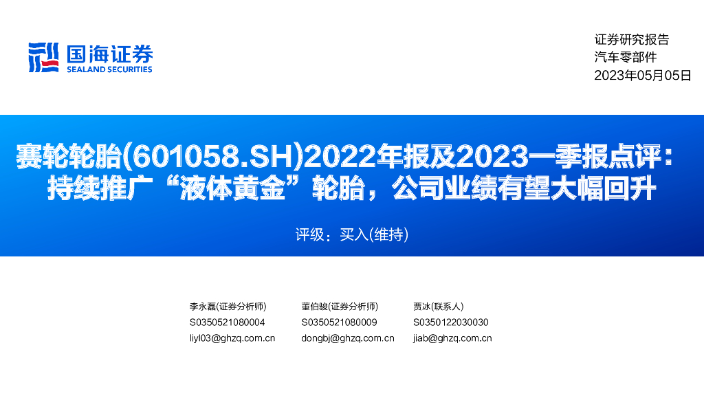 国海证券:赛轮轮胎(601058)-2022年报及2023一季报点评:持续推广“液体黄金”轮胎,公司业绩有望大幅回升.pdf