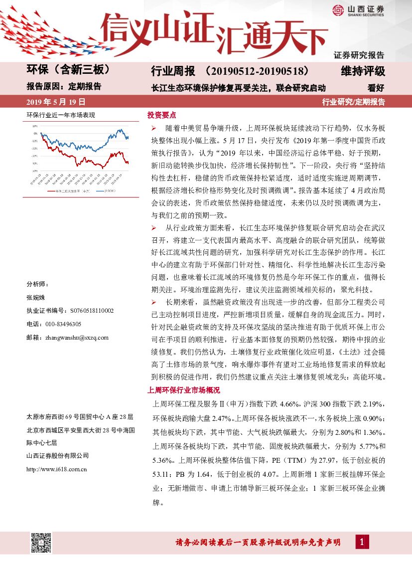 山西证券:环保(含新三板)行业周报:长江生态环境保护修复再受关注,联合研究启动.pdf