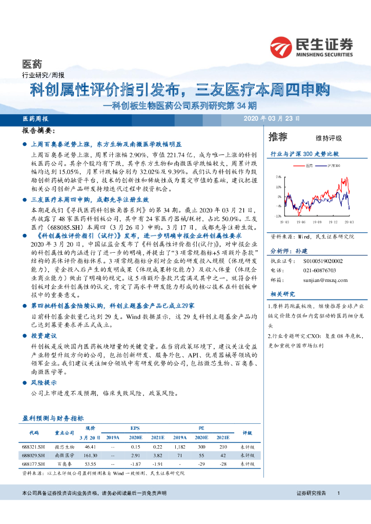民生证券:科创板生物医药公司系列研究第34期:科创属性评价指引发布,三友医疗本周四申购.pdf