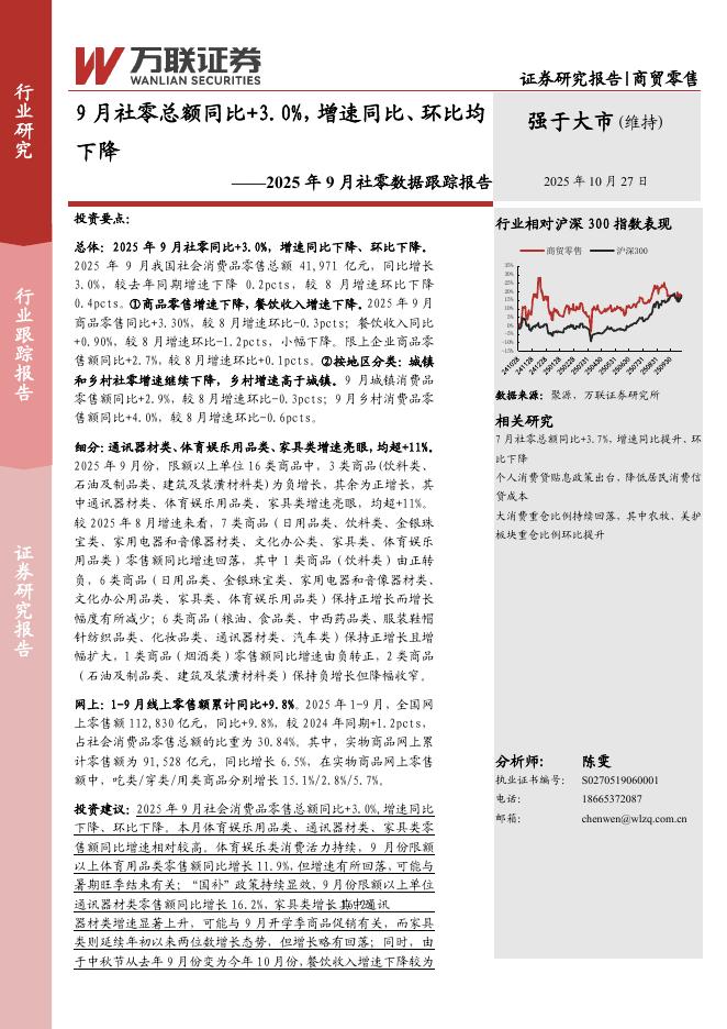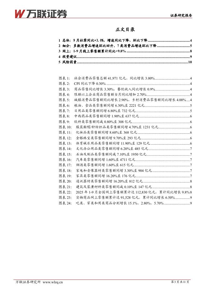 万联证券:2025年9月社零数据跟踪报告:9月社零总额同比+3.0%,增速同比、环比均下降.pdf
