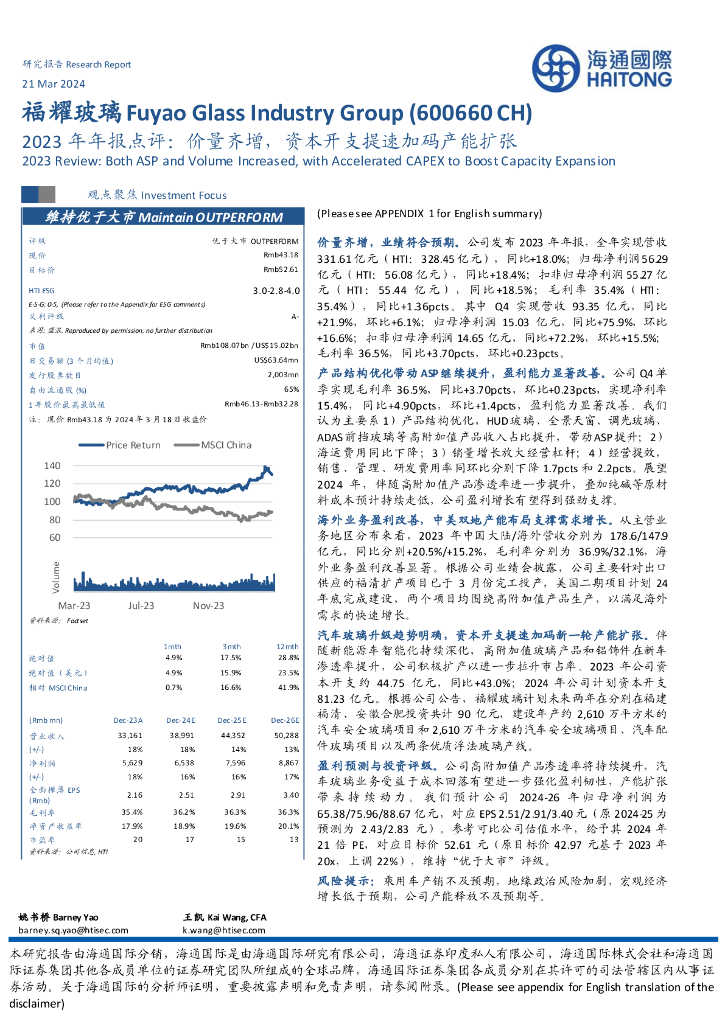 海通国际:福耀玻璃(600660)-2023年年报点评:价量齐增,资本开支提速加码产能扩张.pdf