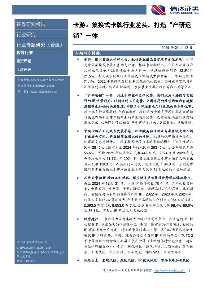 信达证券:卡游:集换式卡牌行业龙头,打造“产研运销”一体.pdf