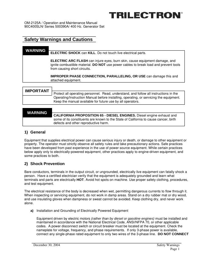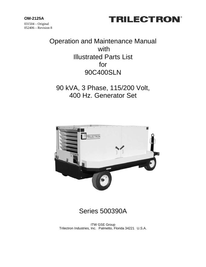 90C400SLN 90 kVA, 3 Phase, 115/200 Volt, 400 Hz Generator Set Operation and Maintenance Manual.pdf