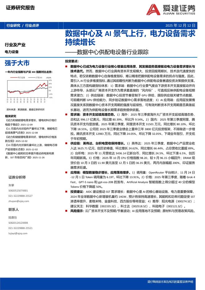 爱建证券:数据中心供配电设备行业跟踪:数据中心及AI景气上行,电力设备需求持续增长.pdf