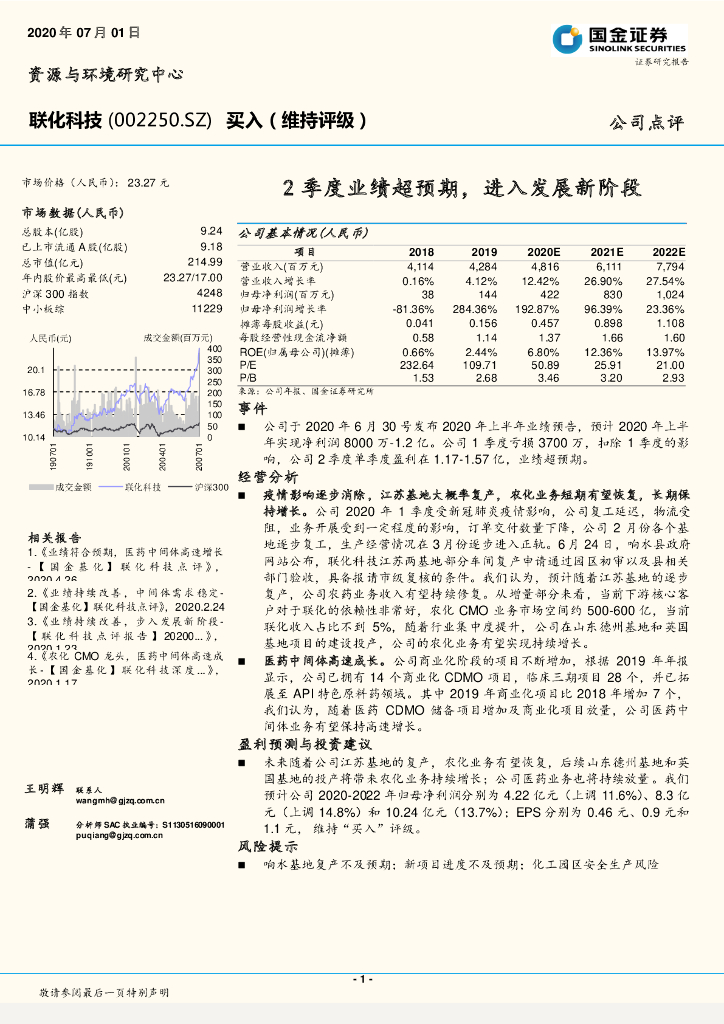 国金证券:联化科技(002250)-2季度业绩超预期,进入发展新阶段.pdf