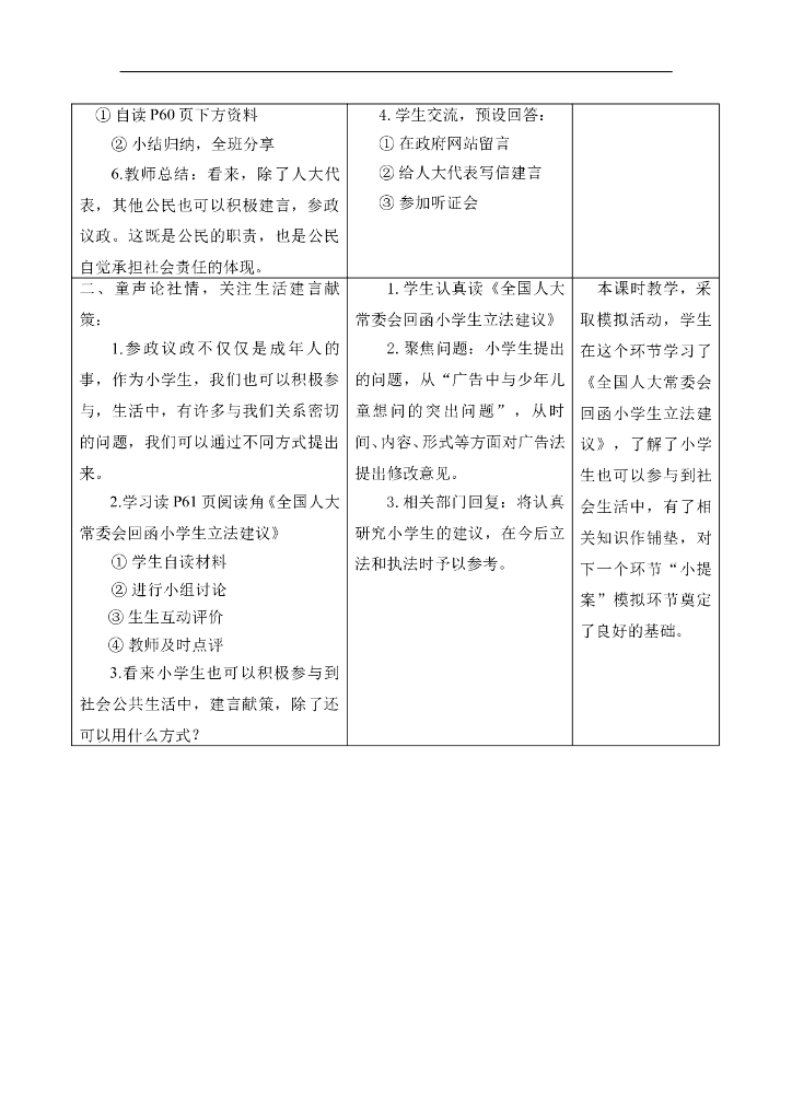 道德与法制6.人大代表为人民教案 第3课时 教案.doc