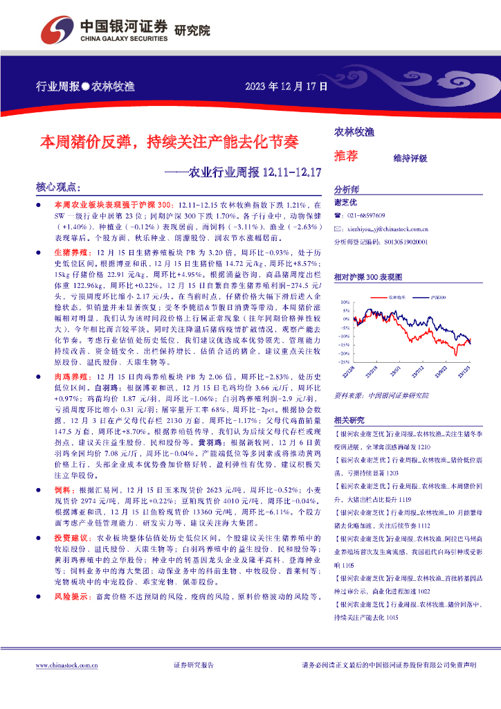 中国银河:农业行业周报:本周猪价反弹,持续关注产能去化节奏.pdf