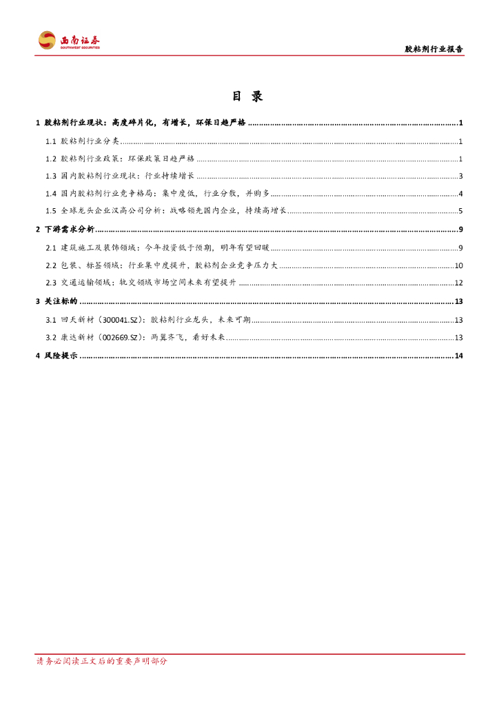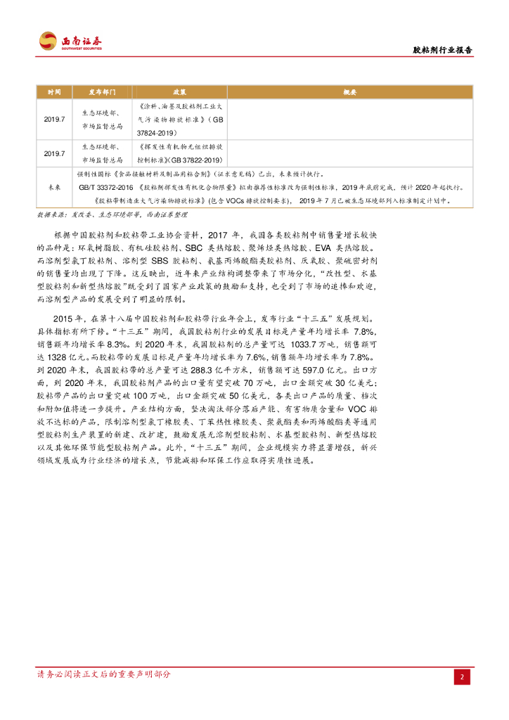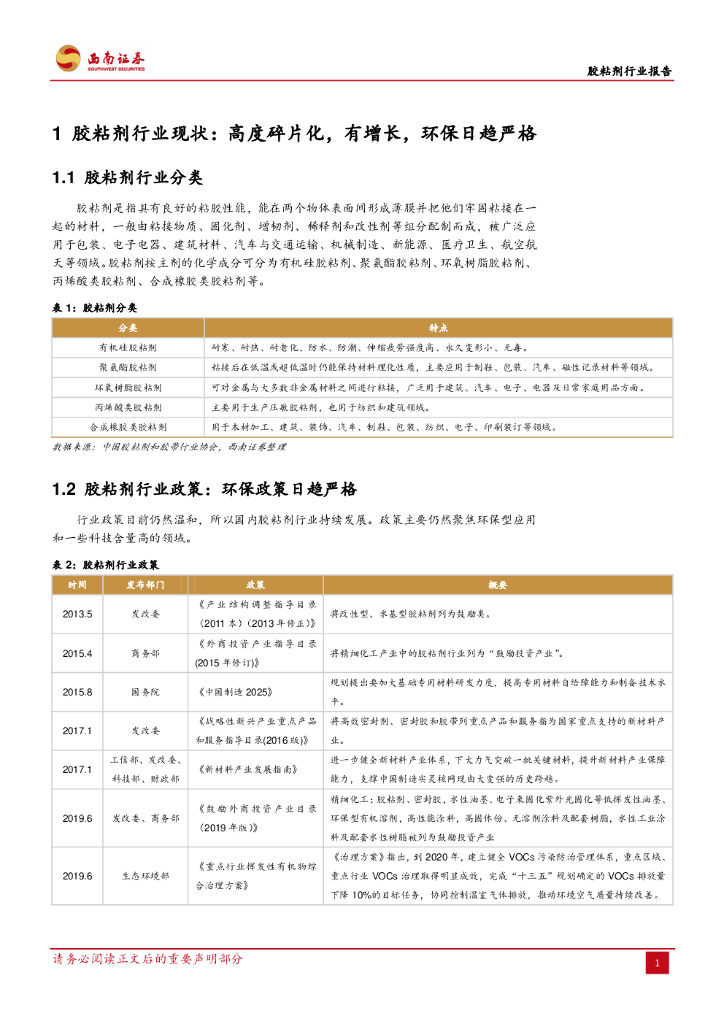 西南证券:胶粘剂行业报告:胶粘剂行业持续增长,看好龙头企业.pdf