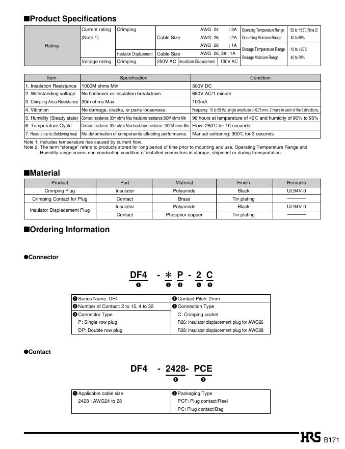 HRS 2mm Pitch Connector Directly Mounted on Board DF4 Series 数据手册.pdf
