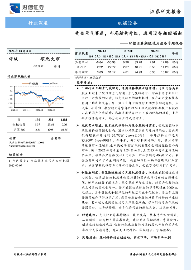 财信证券:湘股通用设备专题报告:受益景气赛道,布局结构升级,通用设备湘股崛起.pdf