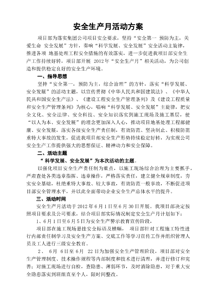 项目部工程安全文明施工活动月方案.doc