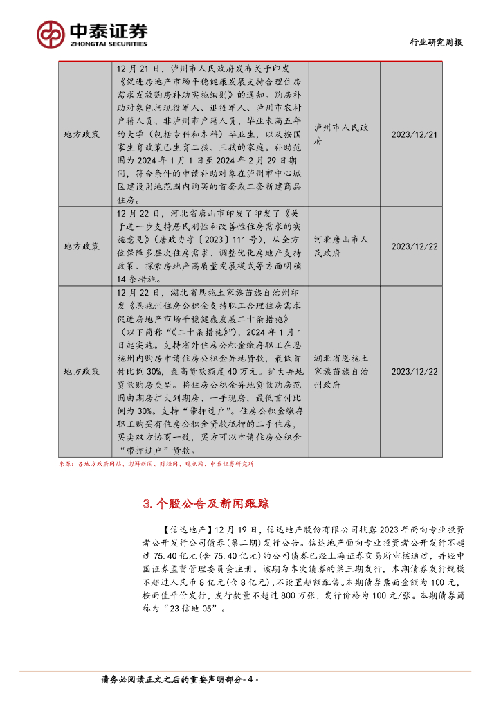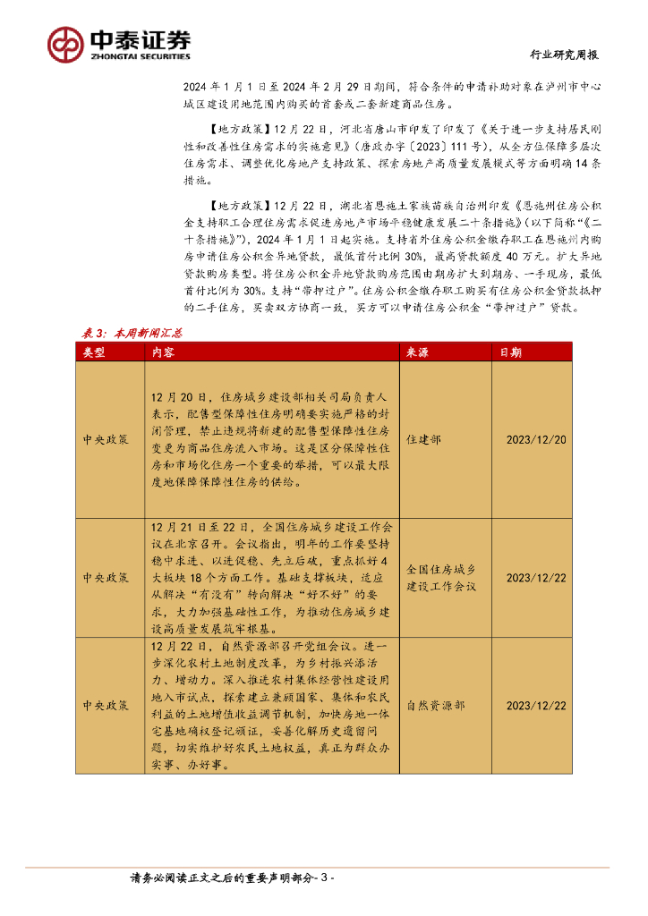 中泰证券:房地产行业研究周报:明年房地产政策定调“稳中求进”,新房销售同环比改善.pdf