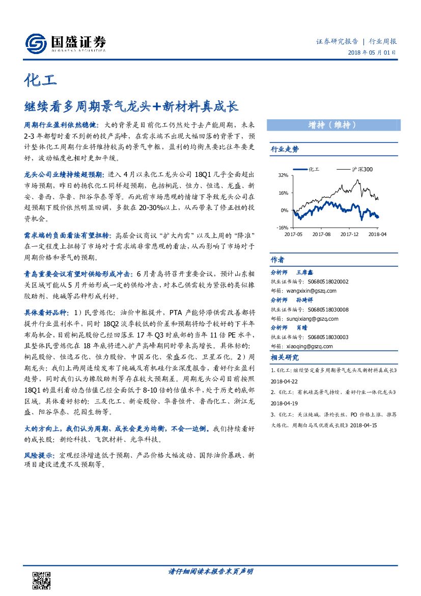 国盛证券:化工行业周报:继续看多周期景气龙头+新材料真成长.pdf