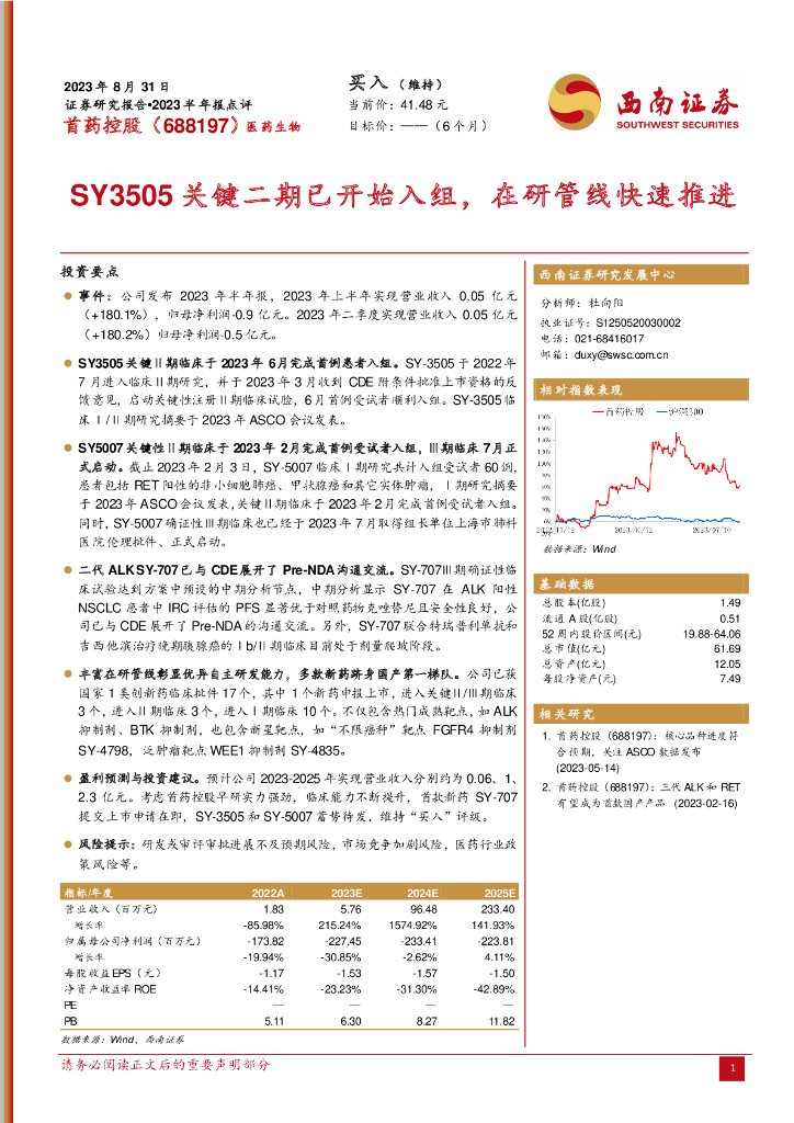 西南证券:首药控股(688197)-SY3505关键二期已开始入组,在研管线快速推进.pdf