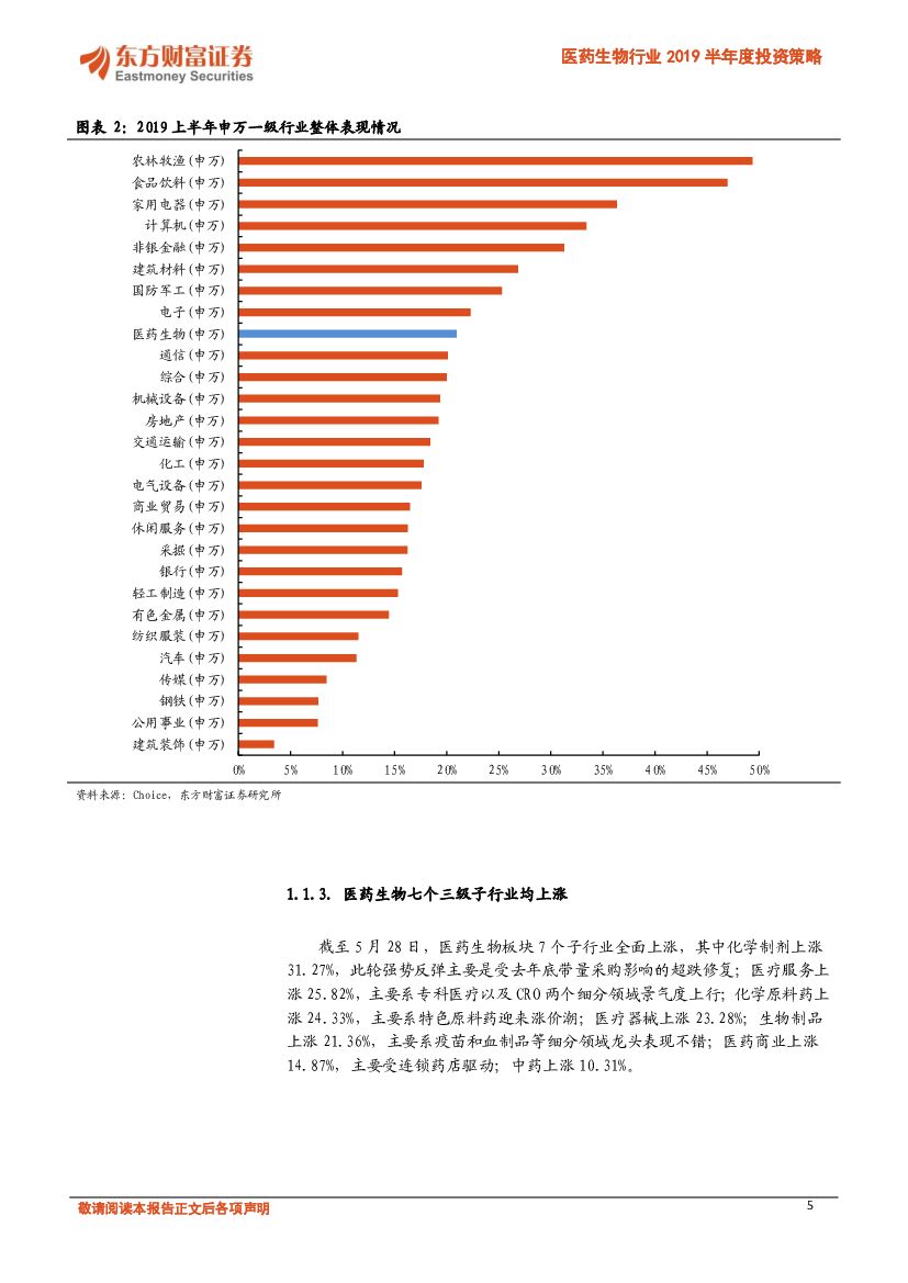 东方财富证券:医药生物行业2019半年度投资策略:结构性行情持续,关注细分领域龙头.pdf