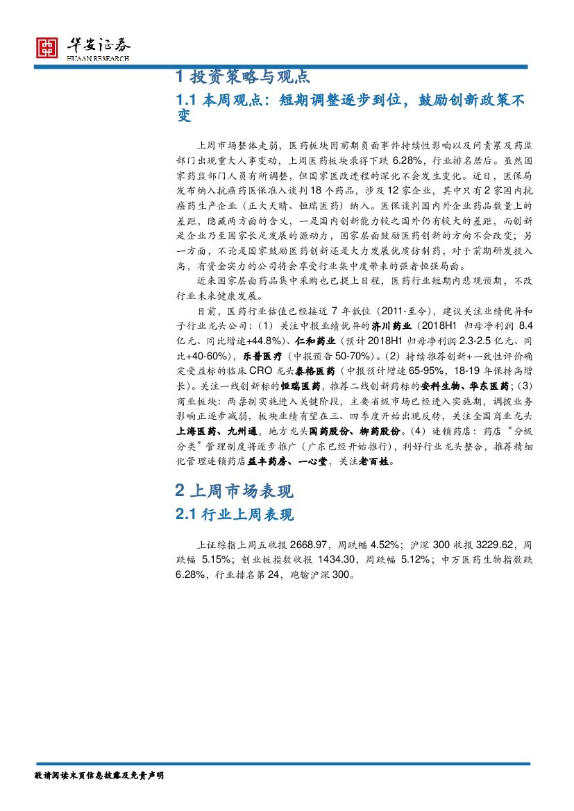 华安证券:医药生物行业周报:短期调整逐步到位,鼓励创新政策不变.pdf
