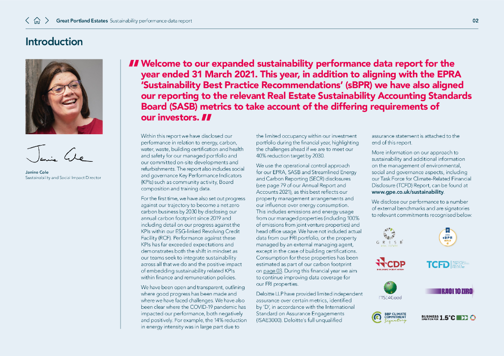 Great Portland Estates plc(GPORGPEAFGPOR.L)2021年可持续发展报告(英文版).pdf