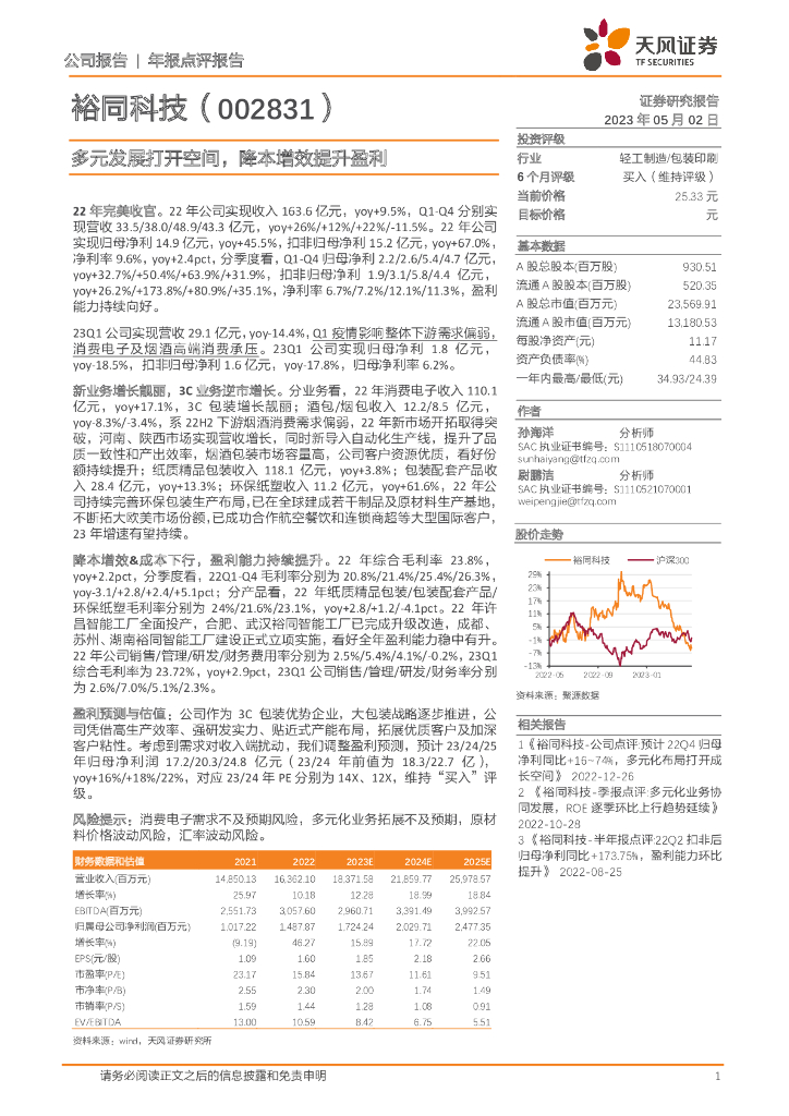天风证券:裕同科技(002831)-多元发展打开空间,降本增效提升盈利.pdf
