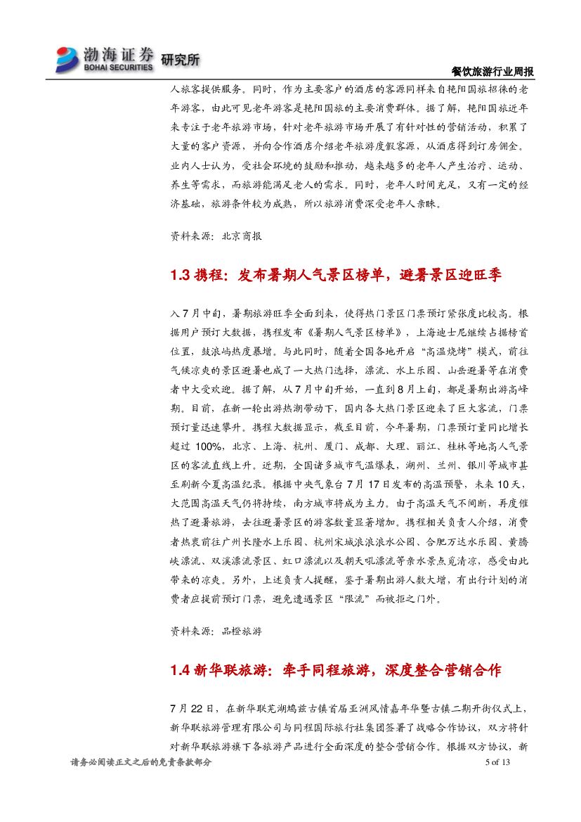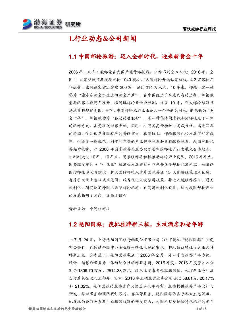 渤海证券:餐饮旅游行业周报:关注消费升级下的细分领域机会.pdf