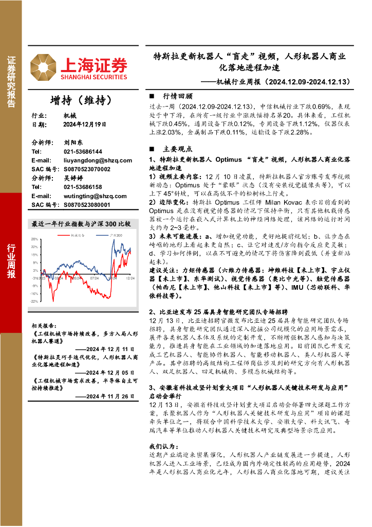 上海证券:机械行业周报:特斯拉更新机器人“盲走”视频,人形机器人商业化落地进程加速.pdf