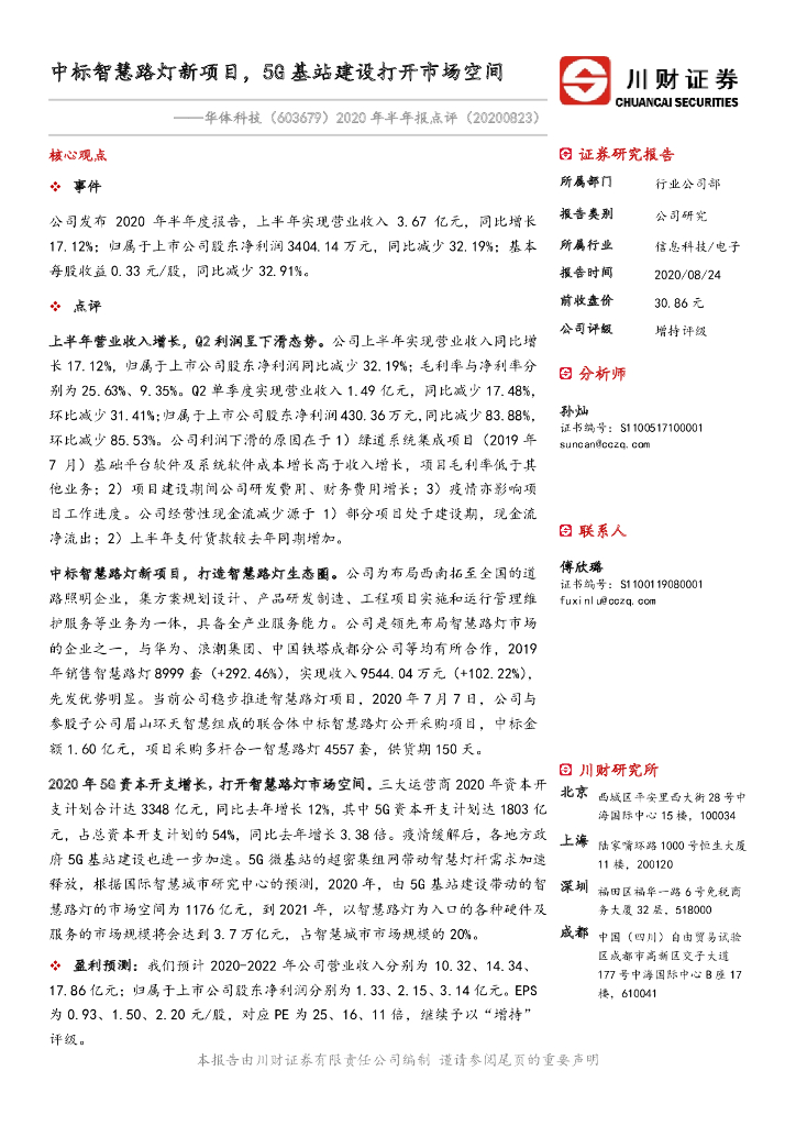 川财证券:华体科技(603679)-2020年半年报点评:中标智慧路灯新项目,5G基站建设打开市场空间.pdf