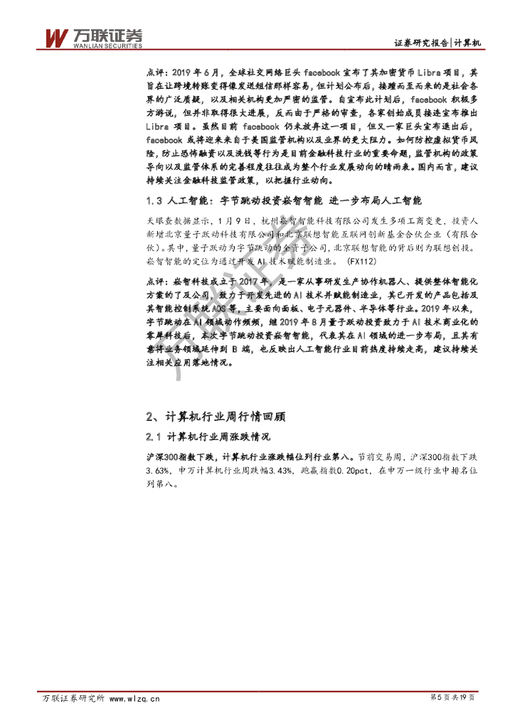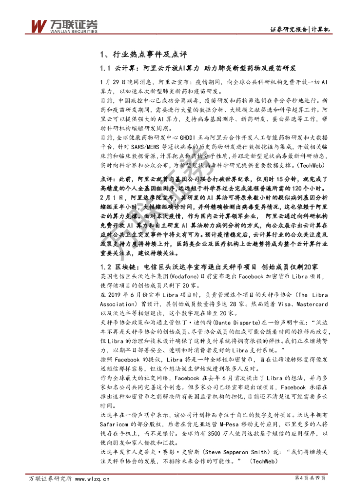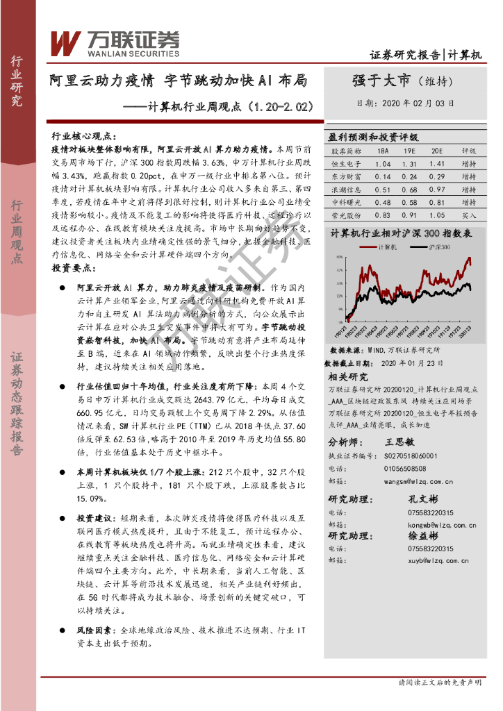 万联证券:计算机行业周观点:阿里云助力疫情 字节跳动加快AI布局.pdf