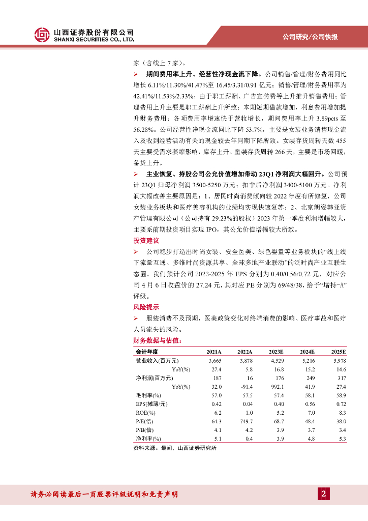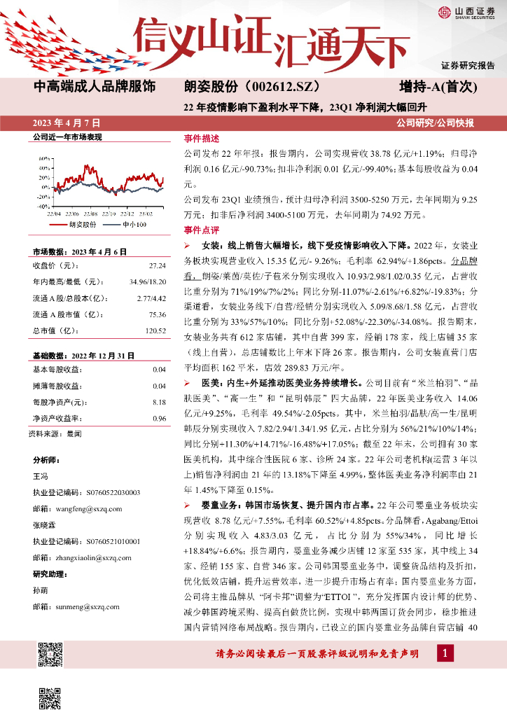 山西证券:朗姿股份(002612)-22年疫情影响下盈利水平下降,23Q1净利润大幅回升.pdf