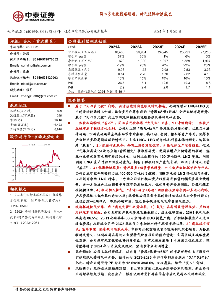 中泰证券:九丰能源(605090)-同心多元化战略明确,特气矩阵加速成长.pdf