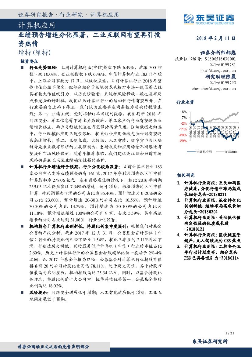 东吴证券:计算机应用:业绩预告增速分化显著,工业互联网有望再引投资热情.pdf