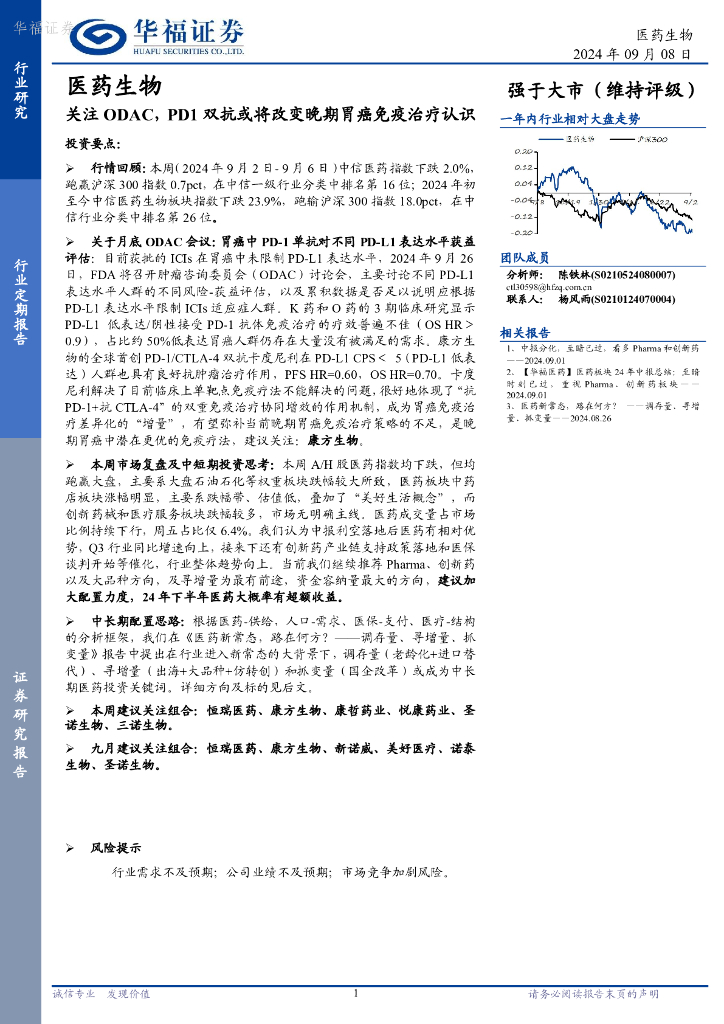 华福证券:医药生物行业定期报告:关注ODAC,PD1双抗或将改变晚期胃癌免疫治疗认识.pdf